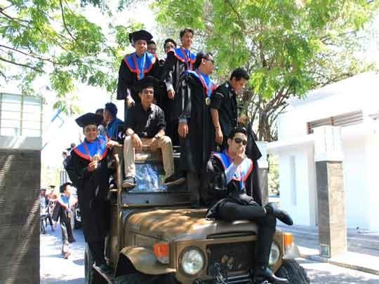 Di setiap kesempatannya, euforia wisuda ITS memang terasa tak lengkap tanpa diwarnai aksi arak-arakan para wisudawan. Iring-iringin mahasiswa berpakaian seragam seraya meneriakkan kalimat penyemangat masih menjadi identitas kampus perjuangan