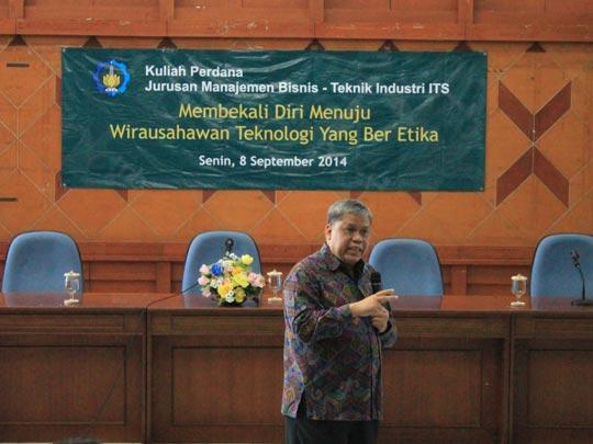 Jurusan Manajemen Bisnis menghelat kuliah tamu (kultam) perdana, Senin (8/9). Sekretaris Direktorat Jenderal Pendidikan Tinggi, Ir Patdono Suwignjo MEng PhD, pun didapuk untuk mengisi kultam bertema Membekali Diri Menuju