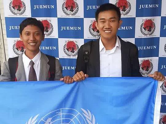 Kamis (26/6), Yabes David Losong dan Achmad Rizal Mustaqim mendarat di Jepang sebagai peserta simulasi sidang Perserikatan Bangsa Bangsa (PBB), Japan University English Model United Nation (JUEMUN) 2014. Tak