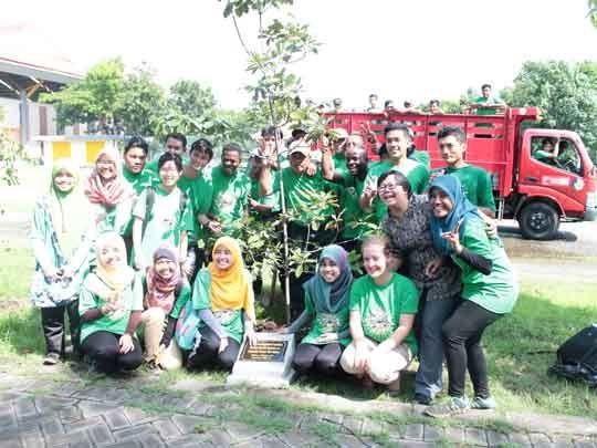 Tak kurang dari 20 mahasiswa internasional turut serta mengikuti gelaran Gugur Gunung 6 (G2.6) ITS. Tak hanya terlarut dalam semarak kegiatan, mereka lantas menanam beberapa pohon yang difokuskan pada