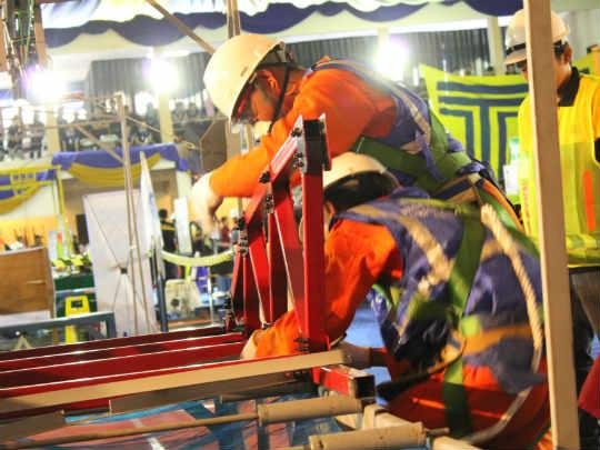 Pada uji beban, Kompetisi Jembatan Indonesia (KJI) IX kategori bentang panjang atau busur, Sabtu (30/11) tim ITS berhasil mencapai peringkat kedua. Pada poin kekokohan ini ITS hanya selisih tipis