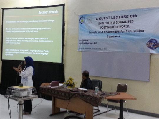 Kuliah tamu yang diadakan oleh mata kuliah Bahasa Inggris hari Sabtu, 9 November 2013 di Teater A berjudul English in Globalised Postmodern World: Trends and Challanges for Indonesian Learners.