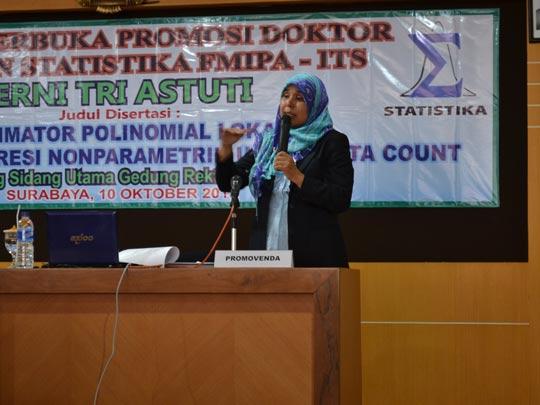 Jurusan Statistika ITS kembali meluluskan satu mahasiswa jurusan S3. Dengan tesis berjudul Estimator Polinomial Lokal dalam Model Regresi Non Parametik untuk Data Count, Erni Tri Astuti berhasil mengantongi nilai