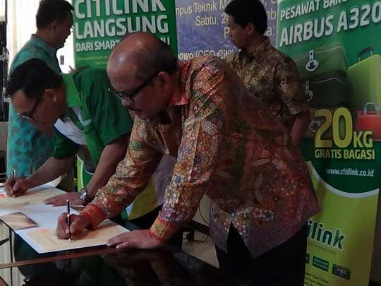 ITS kembali melakukan kerjasama dengan perusahaan dalam negeri. Kali ini, Citilink, salah satu maskapai penerbangan nasional, menandatangani Memorandum of Understanding (MoU) dengan ITS, Sabtu (28/9). Melalui MoU ini, Citilink