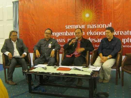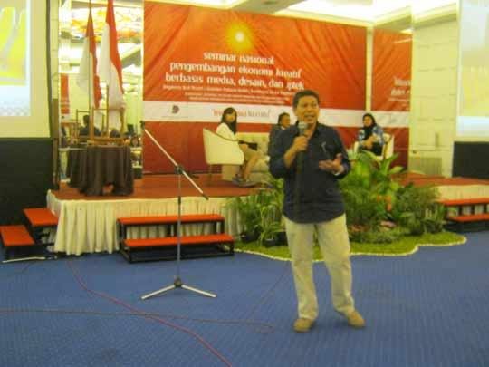 Seminar nasional Pengembangan Ekonomi Kreatif Berbasis Media, Desain dan Iptek yang berlangsung mulai Selasa, (24/9) turut menghadirkan Agus Windharto. Desainer produk, peneliti dan Ketua ITS Design Center ini mempresentasikan