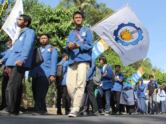 Sorak sorai mahasiswa baru ITS mewarnai parade pembukaan dies natalis ITS yang ke-53. Yel-yel dari berbagai fakultas serta kibaran bendera besar mewakili fakultas masing-masing turut menambah meriah suasana malam