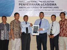 Mulai tahun 2013 ini, untuk pertama kalinya, American Bureau of Shipping (ABS) memberikan beasiswa untuk mahasiswa Fakultas Teknlogi Kelautan (FTK). Penyerahan beasiswa tersebut secara simbolis berlangsung di ruang sidang
