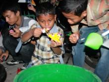 Kegembiraan anak-anak daerah Keputih Pompa tergambar jelas saat membuat roket air dan kapal tuk-tuk pada Minggu malam (6/4). Technology for Children (Teci) berhasil memecah keheningan malam dengan gelak tawa