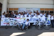Peserta Green ITS Eco Campus Tour De Java dilepas oleh Rektor ITS, Prof Dr Ir Triyogi Yuwono, Sabtu (15/10). Jangan bayangkan peserta gowes Jakarta-Surabaya ini adalah pria-pria muda. Karena