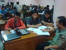 Ruang Sidang Senat FTI terlihat lebih ramai daripada hari biasa. Beberapa mahasiswa silih berganti memasuki ruang sidang. Sebagian terlihat tegang, sedang sebagian lain asyik berdiskusi sambil mengoperasikan laptop. Rupanya,