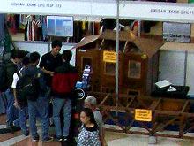 Benda di stan pameran Teknik Sipil itu panjangnya sekitar dua meter lebih. Terbuat dari jajaran-jajaran kayu coklat kemerah-merahan yang disusun dengan kokoh. Empat orang siswa SMA dan SMK mengerubunginya.