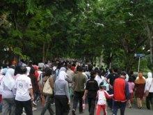 Pembicaraan saya tak jauh dari jalan kaki. Minggu kemarin, jalan sehat pada puncak Dies Natalis. Seluruh civitas terlihat bersemangat, meski keringat bercucuran. Kalau saya menilai, selain untuk gathering, acara