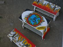 Sekitar 20 bangku taman yang ada di jurusan Desain Produk Industri terlihat berbeda pada awal perkuliahan ini. Bangku dan meja taman berwarna putih yang biasanya dipenuhi coretan iseng mahasiswa,