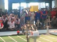 Menyisakan enam belas tim robot, babak perdelapan final Kontes Robot Indonesia (KRI) Regional IV, Minggu (18/5), berlangsung tak seimbang. Hingga setengah babak pertandingan, skor kemenangan terus didominasi oleh robot-robot
