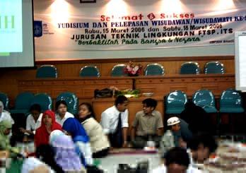 Ingin berbagi kebahagiaan terhadap sesama, wisudawan dan wisudawati Jurusan Teknik Lingkungan mengadakan kegiatan bakti sosial, Rabu (15/3) di ruang Seminar Teknik Lingkungan. Dengan mengundang 50 anak yatim piatu