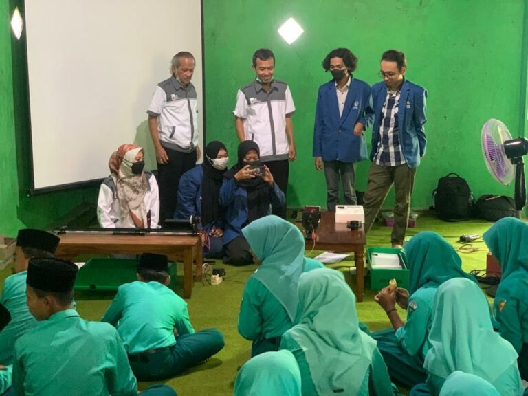 Madiun, ITS News — Tingkatkan pengetahuan terkait ilmu fisika, tim Kuliah Kerja Nyata (KKN) Institut Teknologi Sepuluh Nopember (ITS) beri pencerdasan kepada siswa MTS Bulu Candimulyo, Kabupaten Madiun. Dalam