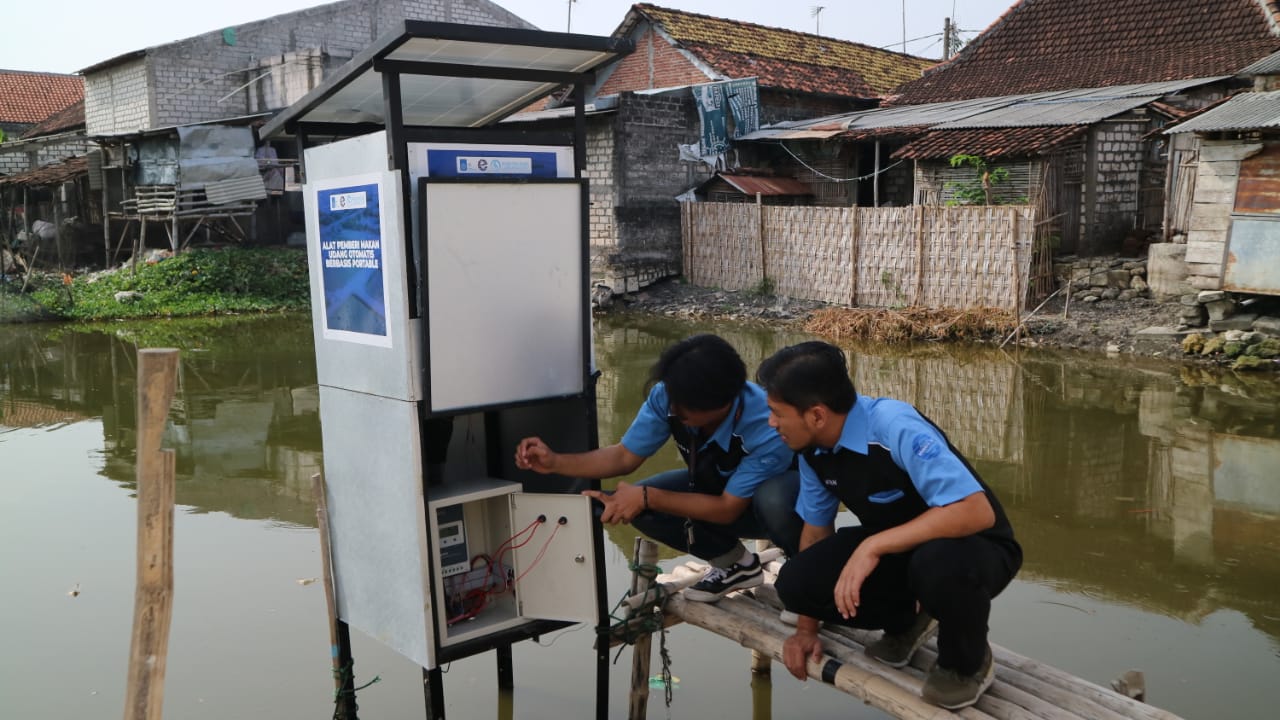 Kampus ITS, ITS News – Tim Kuliah Kerja Nyata Pengabdian Masyarakat (KKN Abmas) Institut Teknologi Sepuluh Nopember (ITS) menciptakan alat pemberi pakan udang otomatis untuk budi daya tambak udang
