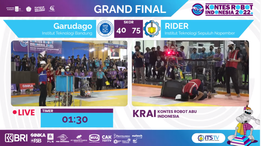 Kampus ITS, ITS News — Memasuki babak final, Kontes Robot Indonesia (KRI) Tingkat Nasional 2022 kian memanas. Mempertahankan posisinya dari tahun kemarin, Tim RIVAL kebanggan Institut Teknologi Sepuluh Nopember