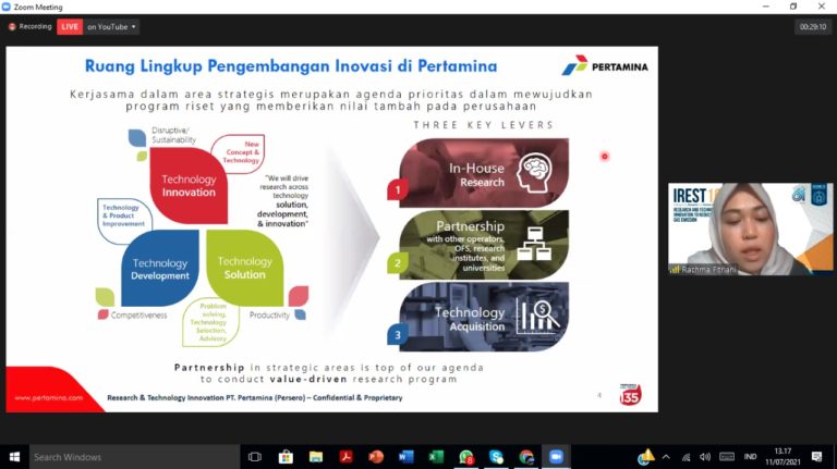 Pemaparan oleh pemateri mengenai ruang lingkup pengembangan inovasi dalam Pertamina yang berhubungan erat dengan Efek Gas Rumah Kaca (GRK). Kampus ITS, ITS News – Pengendalian emisi Gas Rumah Kaca