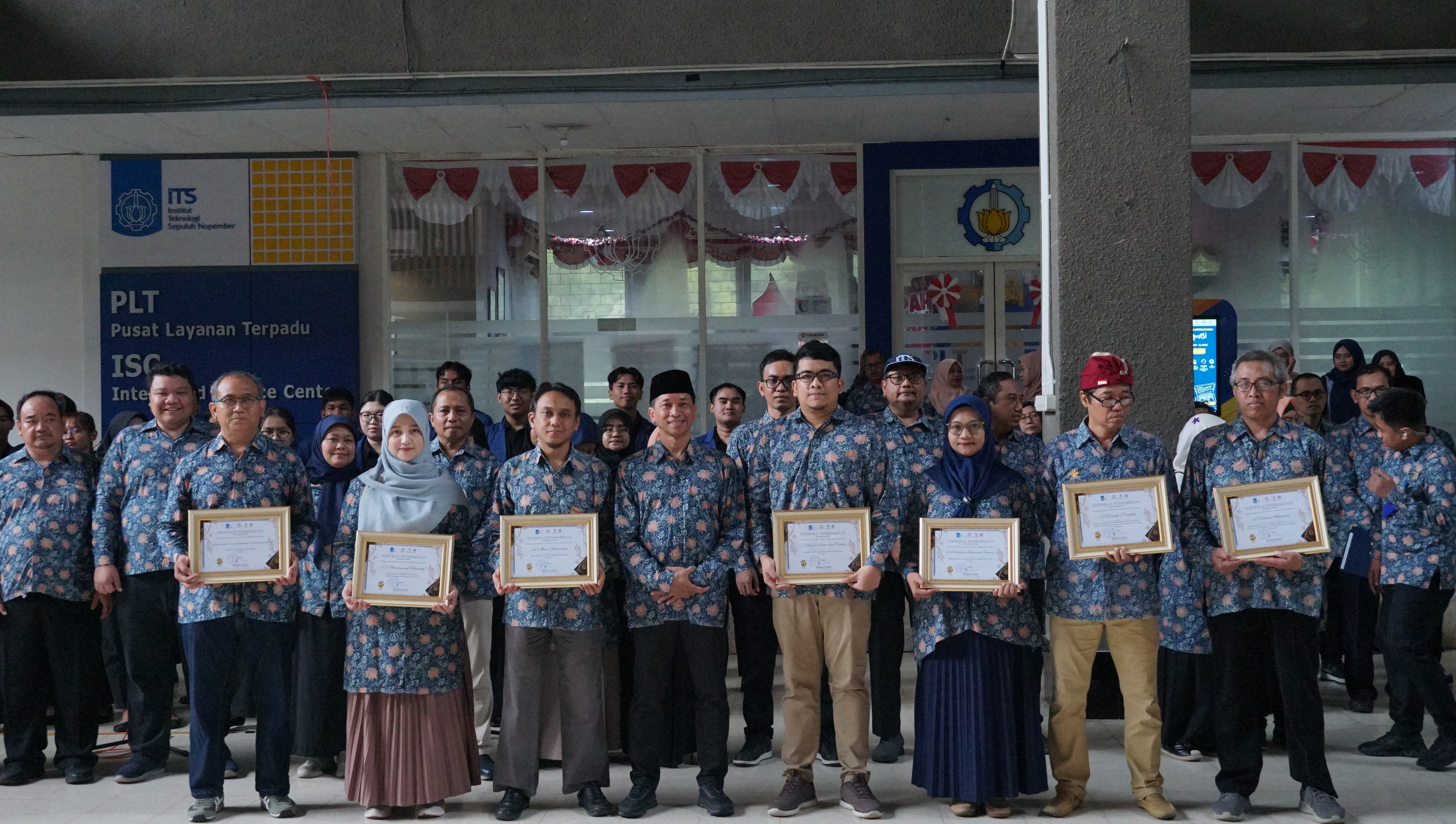 Rektor ITS Rektor ITS Prof Dr (HC) Ir Bambang Pramujati ST MScEng PhD (Empat dari kanan) memberikan SPMI kepada departemen sebagai bentuk apresiasi ITS