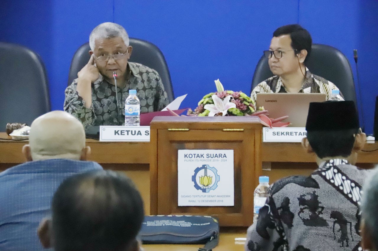Kampus ITS, ITS News – Rangkaian pemilihan orang nomor satu di Institut Teknologi Sepuluh Nopember (ITS) Surabaya hampir sampai pada ujungnya. Sidang Tertutup Senat Akademik (SA) yang terselengggara di Ruang Sidang Senat ITS, Selasa (12/12), berhasil memutuskan tiga nama Calon Rektor (Carek) dari lima Bakal Calon Rektor (Bacarek) ITS periode 2019 – 2024 yang nantinya diserahkan ke Majelis Wali Amanat (MWA) ITS.