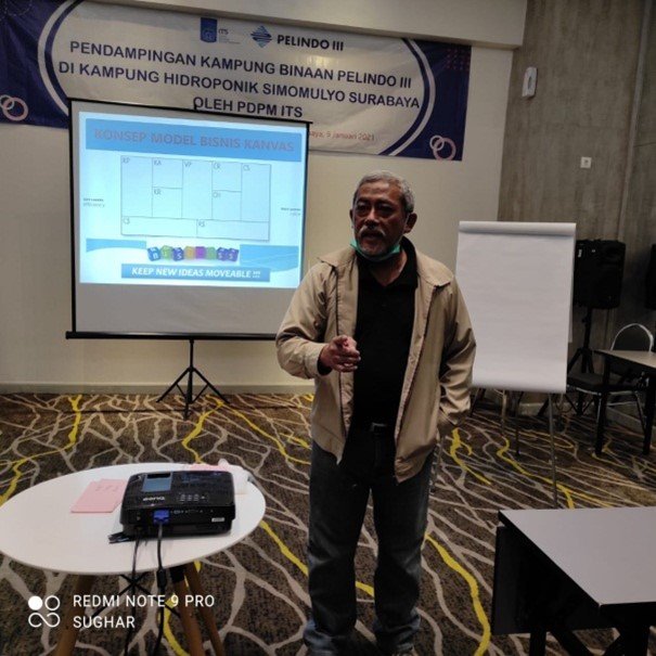 This community service is in the form of BMC model business plan training. The presenters of this training are Ir. Lantip Tri Sunarno, MT Lecturer at the ITS Industry Department. The training participants were 10 people from the Hydroponic Village, Simomulyo Village. Participants are limited to a maximum of 10 people according to health protocols. The community groups who attended represented the hydroponic lettuce farmer group and the hydroponic cake SME group in the Hydroponic Village, Simomulyo Village.