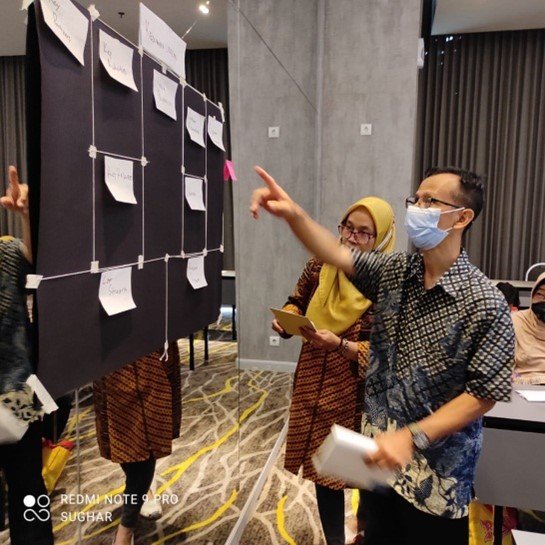 Participants write their business processes on a sheet of paper. Then stick it on the black cloth that has been provided. Every business process idea is written on paper. Participants do not need to feel wrong, because later it will be discussed together. After the group assignments are finished, each group appoints 1 person for presentation.
