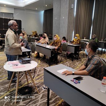 This training uses the POD method, adult learning. Participants are stimulated to be active. Not just passive listening. Submission of material is not only in the form of slides. Submission of material also utilizes other interactive media. Such as black cloth, meta plan paper, and color paper. So that participants are active and not bored.