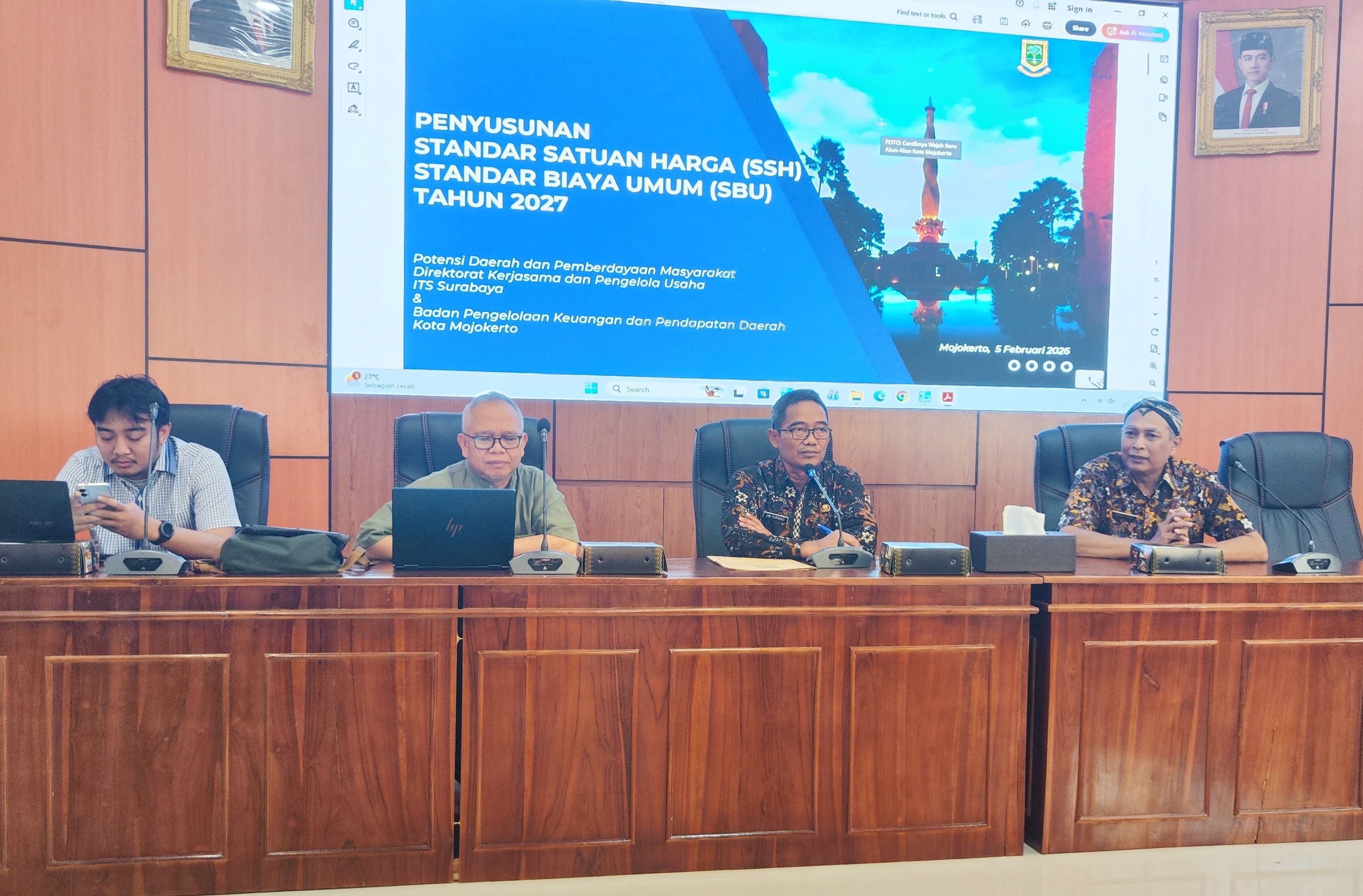 Badan Pengelola Keuangan dan Pendapatan Daerah (BPKPD) Kota Mojokerto melaksanakan kegiatan Focus Group Discussion (FGD) Penyusunan Standar Satuan Harga (SSH) dan Analisis Standar Biaya (ASB) Tahun 2027 pada Hari Kamis, 5 Februari 2026. Kegiatan ini dilaksanakan di Ruang Pertemuan BPKPD Kota Mojokerto, Jl. Letkol Sumarjo 62 Mojokerto. FGD ini dihadiri oleh Kepala BPKPD Kota Mojokerto, Dwi Purwoko, SH., MH., Kabid Aset Arifaini Yahya, Kasubbid Perencanaan dan Penatausahaan BPKPD Akhmad Jamaluddin, perwakilan organisasi perangkat daerah (OPD), kelurahan, serta tim penyusun dari Institut Teknologi Sepuluh Nopember (ITS) Surabaya. Ketua Tim Penyusun Standar Satuan Harga (SSH) adalah Dr. Sutikno, M.Si. dari Departemen Statistika ITS. Ketua Tim Penyusun Harga Satuan Pokok Kegiatan (HSPK) adalah Cahyono Bintang Nurcahyo, ST., MT. dari Departemen Sipil ITS.