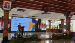 Kepala Bappeda Kabuapten Mojokerto, Bambang Eko Wahyudi menyampaikan sambutan.