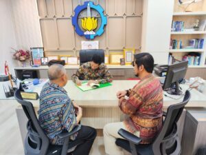 Surabaya – ITS. Rabu 3 Juli 2024 Rektor Institut Teknologi Sepuluh Nopember (ITS) Surabaya Bambang Pramujati, ST., M.Sc.Eng., Ph.D., melaksanakan tanda tangan nota kesepahaman/memorandum of understanding (MoU) dengan Pusat Investasi Pemerintah (PIP) Kementerian Keuangan (Kemenkeu) Republik Indonesia. MoU ini sebagai dasar pelaksanaan kegiatan kerja sama antara ITS dengan PIP Kemenkeu sinergi program pemberdayaan usaha mikro, kecil dan menengah (UMKM). Tanda tangan MoU ini dilaksanakan di Ruang Rektor ITS secara deks to deks. Hadir dalam tanda tangan MoU ini adalah Direktur Riset dan Pengabdian kepada Masyarakat Fadlilatul Taufany, ST., Ph.D., dan Kepala Pusat Kajian Potensi Daerah dan Pemberdayaan Masyarakat (PDPM) Dr. Sutikno, M.Si.