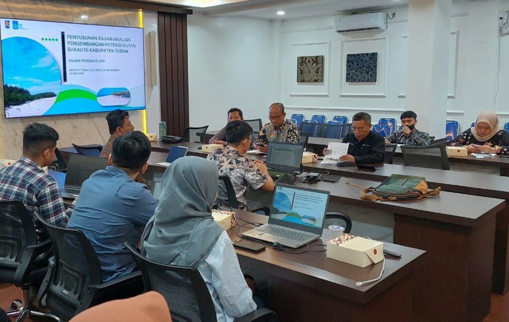 Tim Pusat Studi Potensi Daerah dan Pemberdayaan Masyarakat (Pusdi PDPM) Institut Teknologi Sepuluh Nopember (ITS) Surabaya menyampaikan presentasi laporan pendahuluan Penyusunan Kajian Analisis Pengembangan Potensi Hutan Bakau di Kabupaten Tuban. Kegiatan ini dilaksanakan pada Hari Kamis, 22 Mei 2025, di Kantor Badan Perencanaan Pembangunan, Riset dan Inovasi Daerah (Bapperida) Kabupaten Tuban. Presentasi dihadiri oleh Tim Penyusun ITS, Sekretaris Bapperida (Sekban) Pak Danang, Kepala Bidang Litbang Bapperida, Pak Alex, dan perwakilan organisasi perangkat daerah (OPD) Pemerintah Kabupaten Tuban.