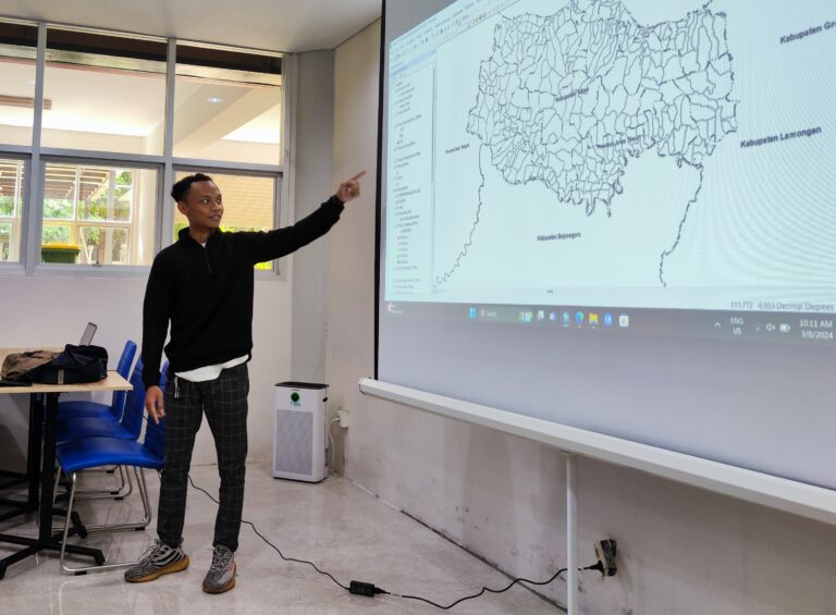 Raga Bagas Pratama menyampaikan materi GIS Surabaya-ITS. Jumat 8 Maret 2024 Pusat Kajian Potensi