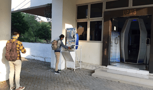 Pelaksanaan Protokol Kesehatan sebelum memasuki gedung UPMB