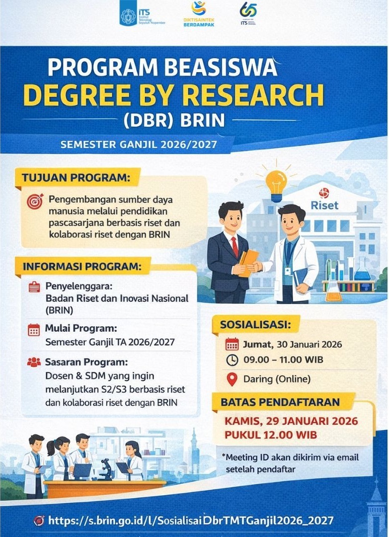 Disampaikan informasi dari Badan Riset dan Inovasi Nasional (BRIN) terkait Program Pengembangan SDM melalui Pendidikan Pascasarjana Berbasis Riset (Degree by Research/DBR) untuk Semester Ganjil TA 2026/2027.