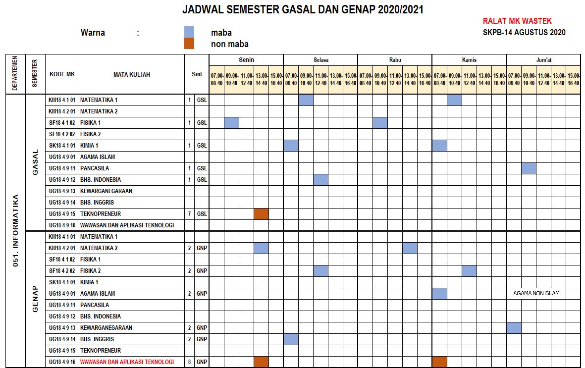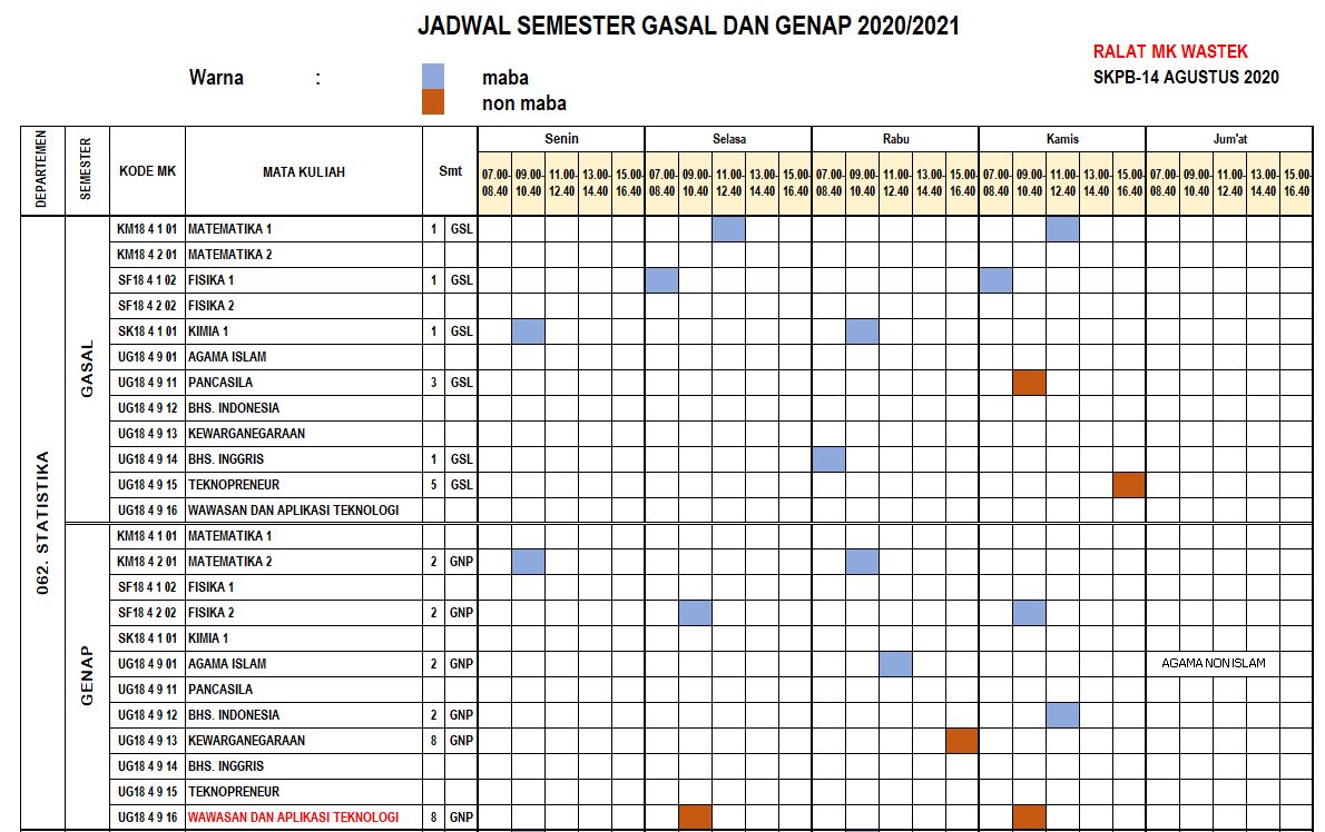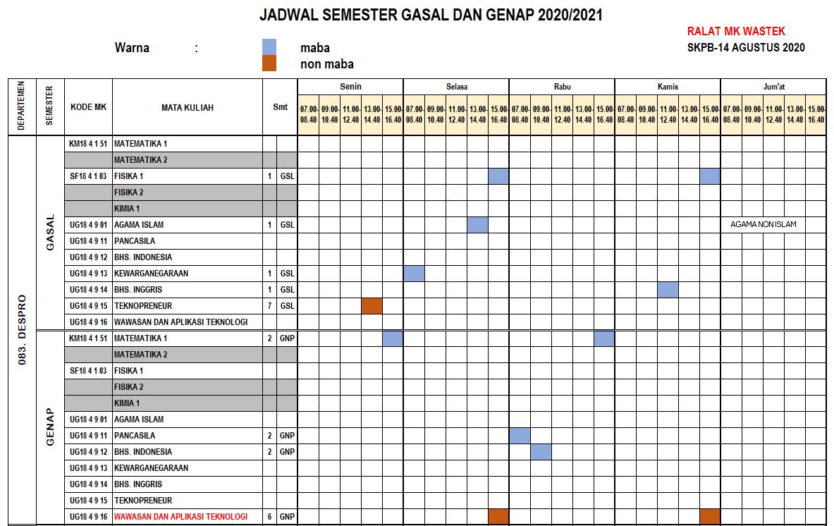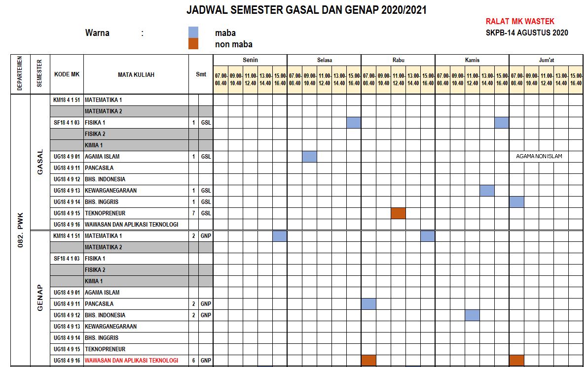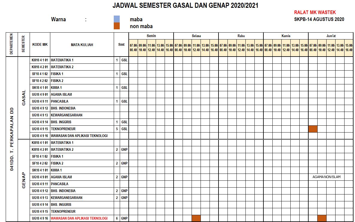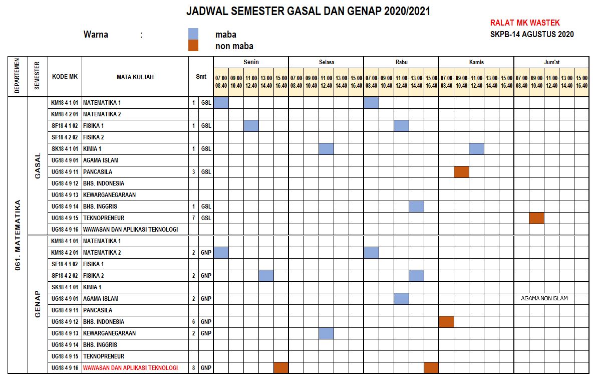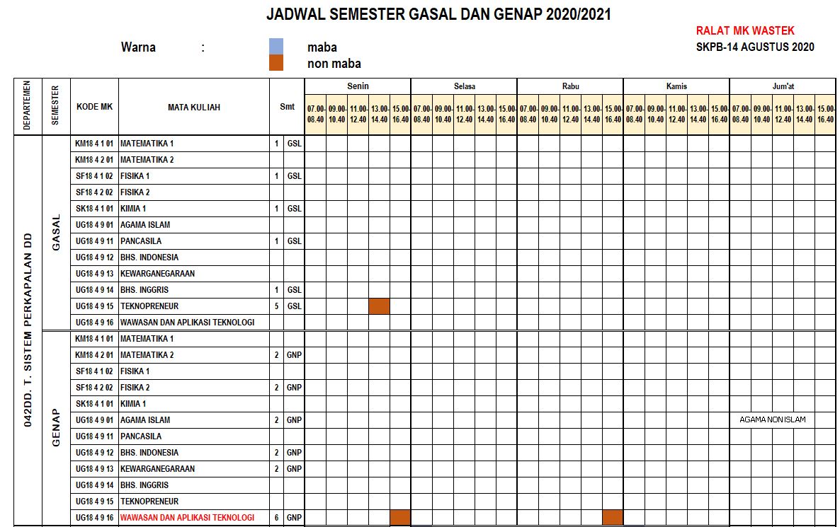 Jadwal Kuliah Semester Gasal dan Genap 2020/2021