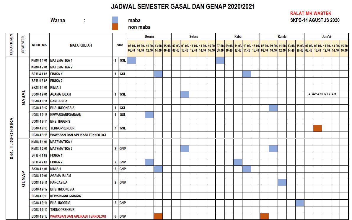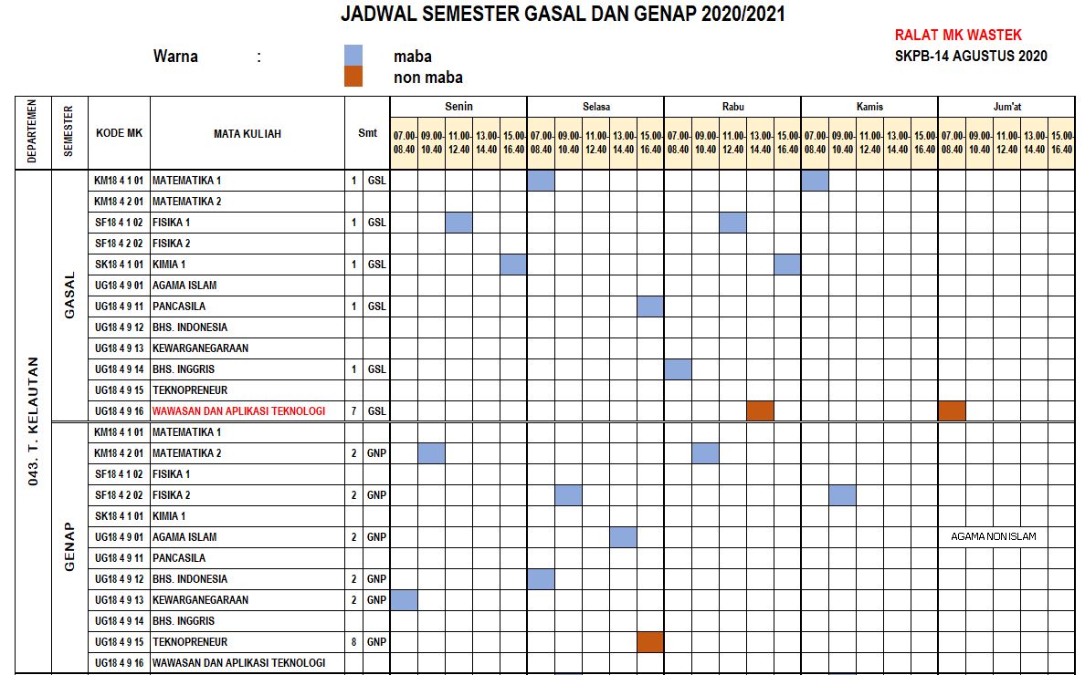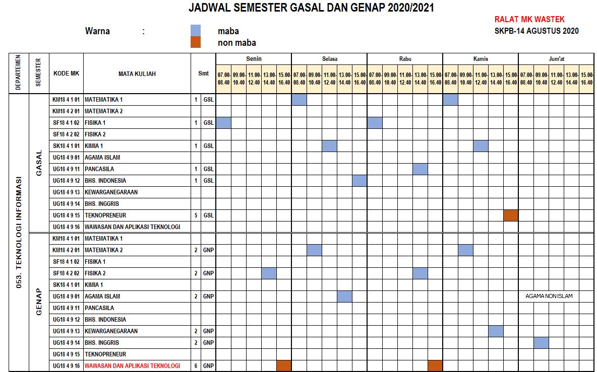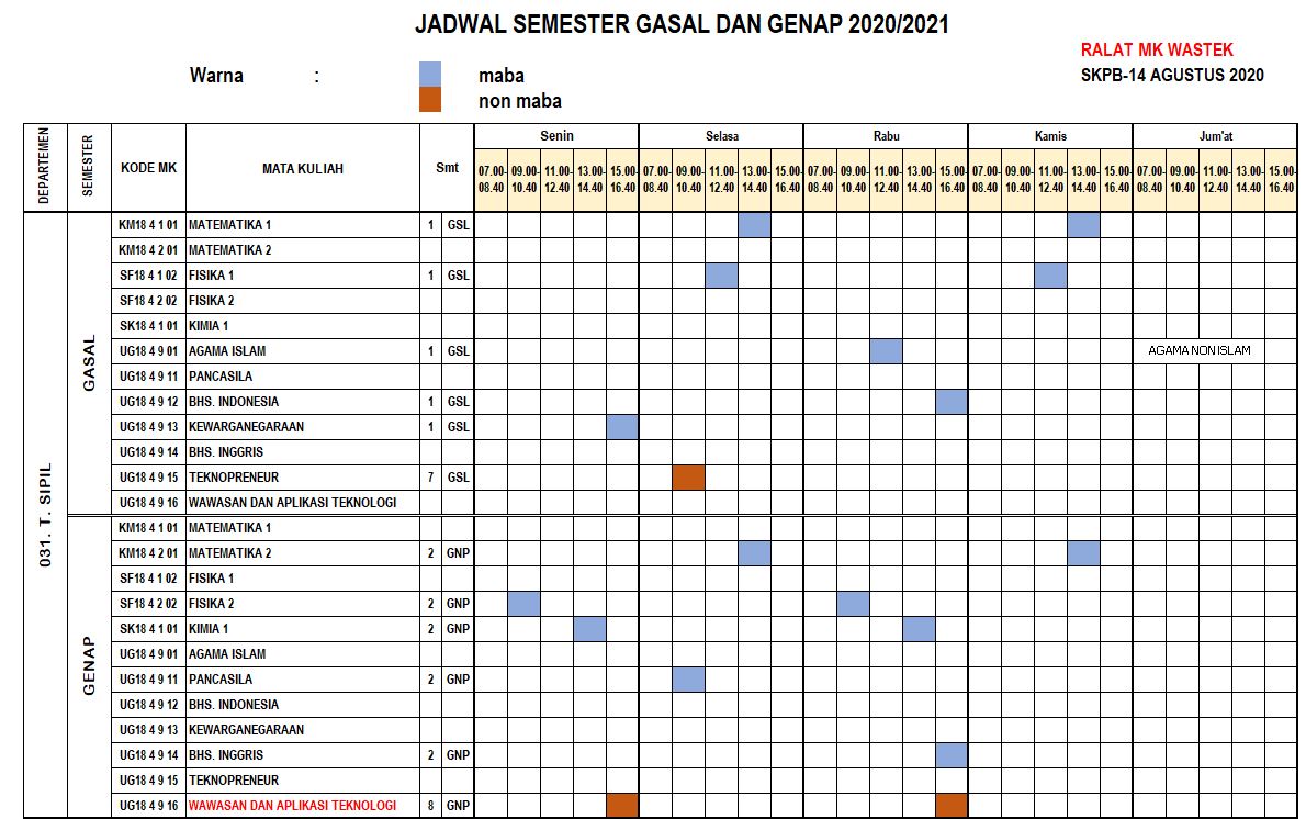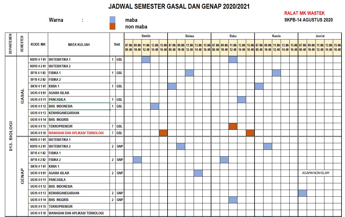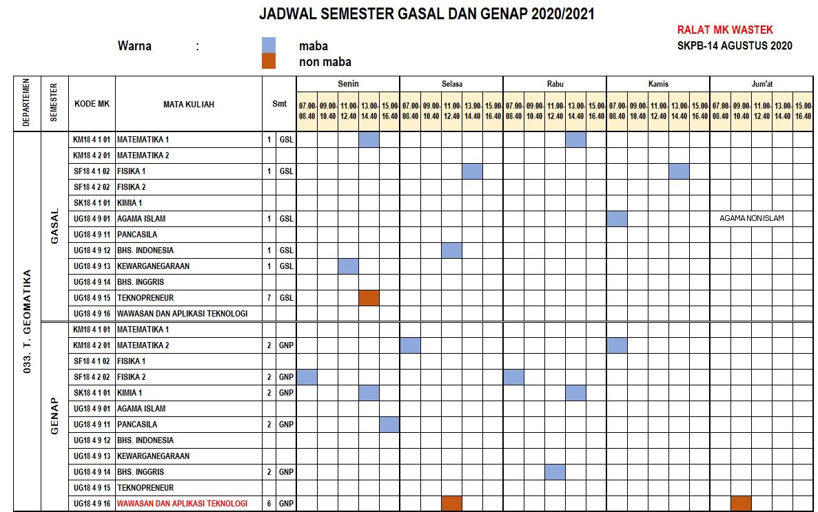 Jadwal Kuliah Semester Gasal dan Genap 2020/2021