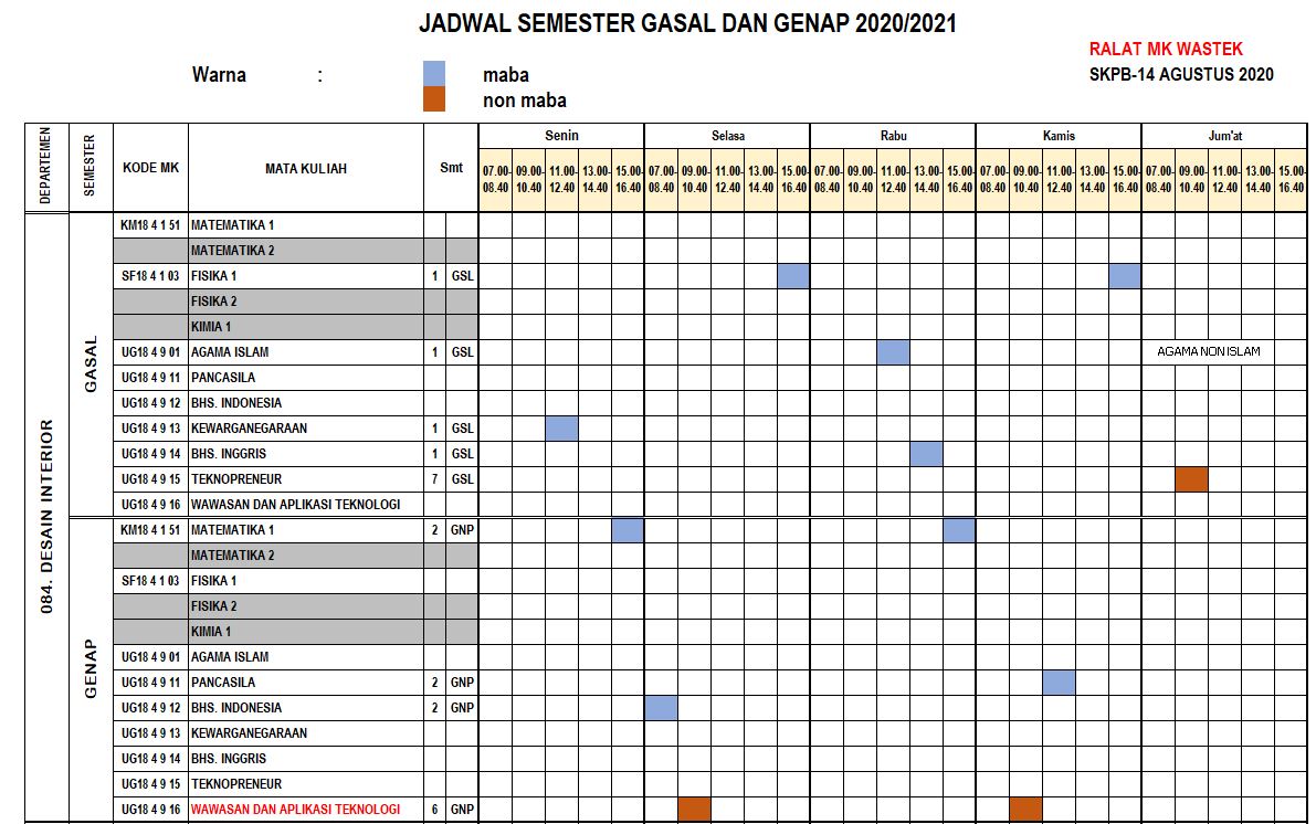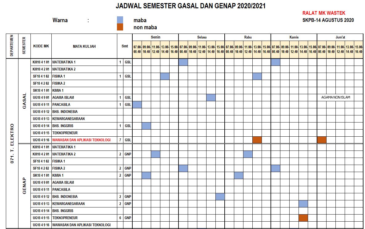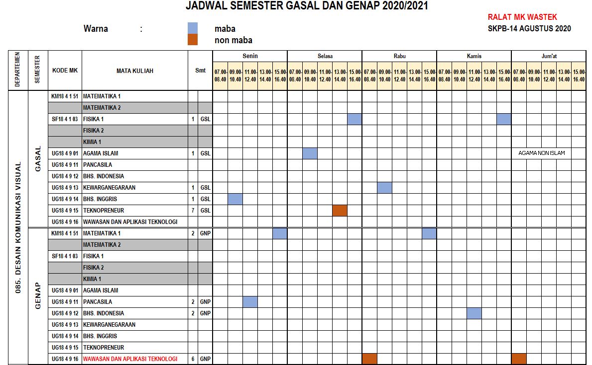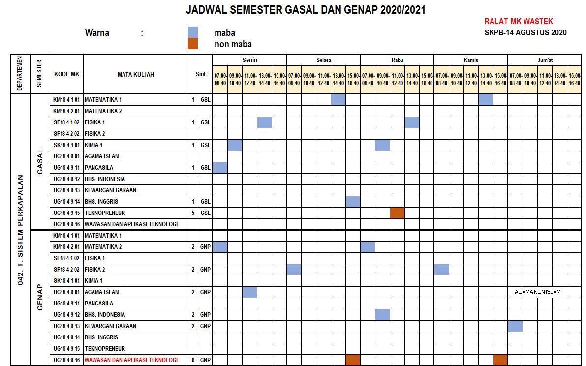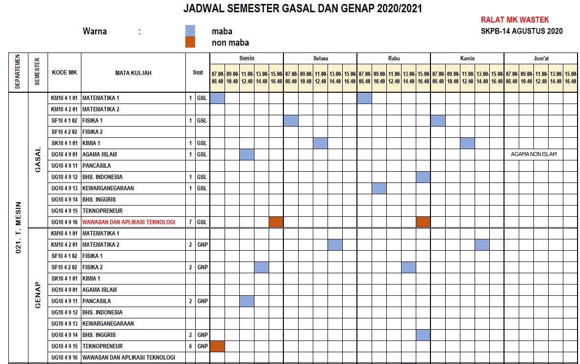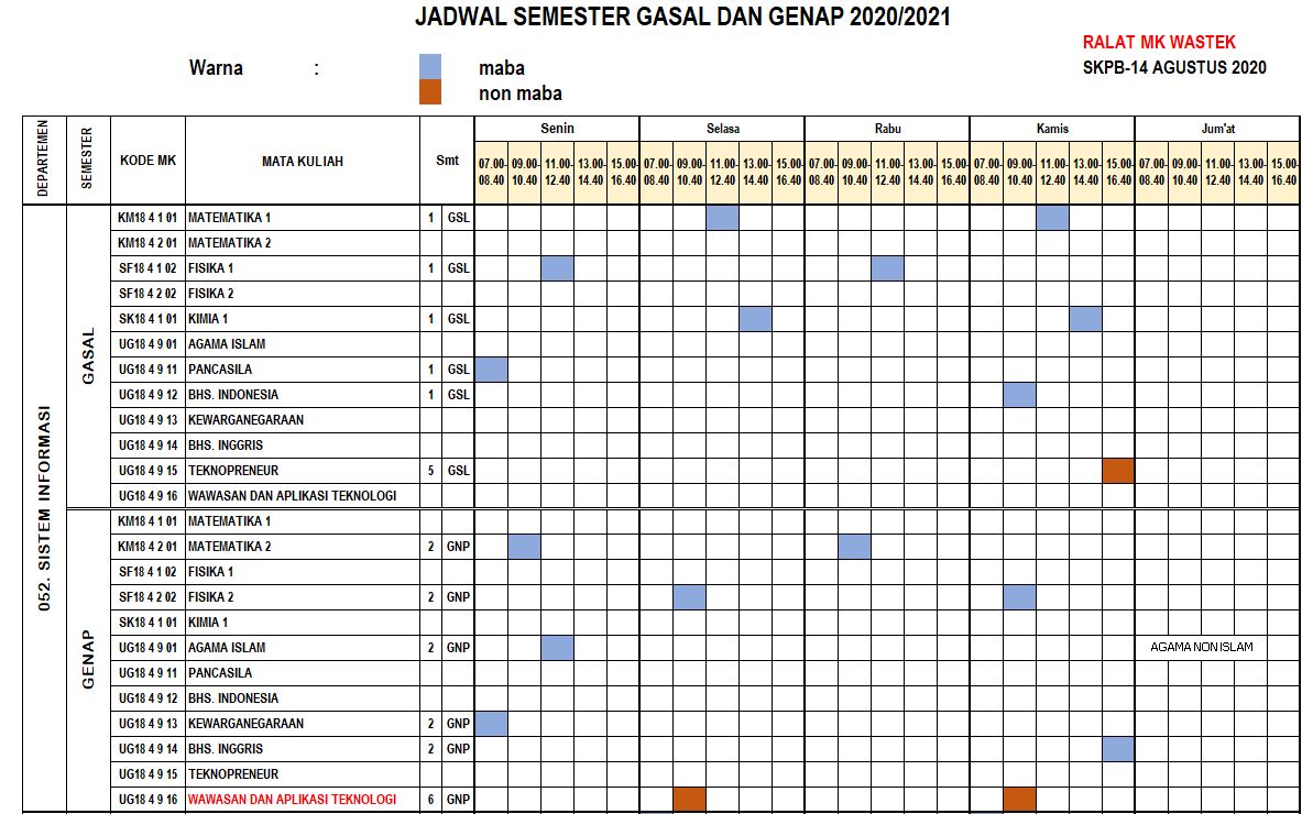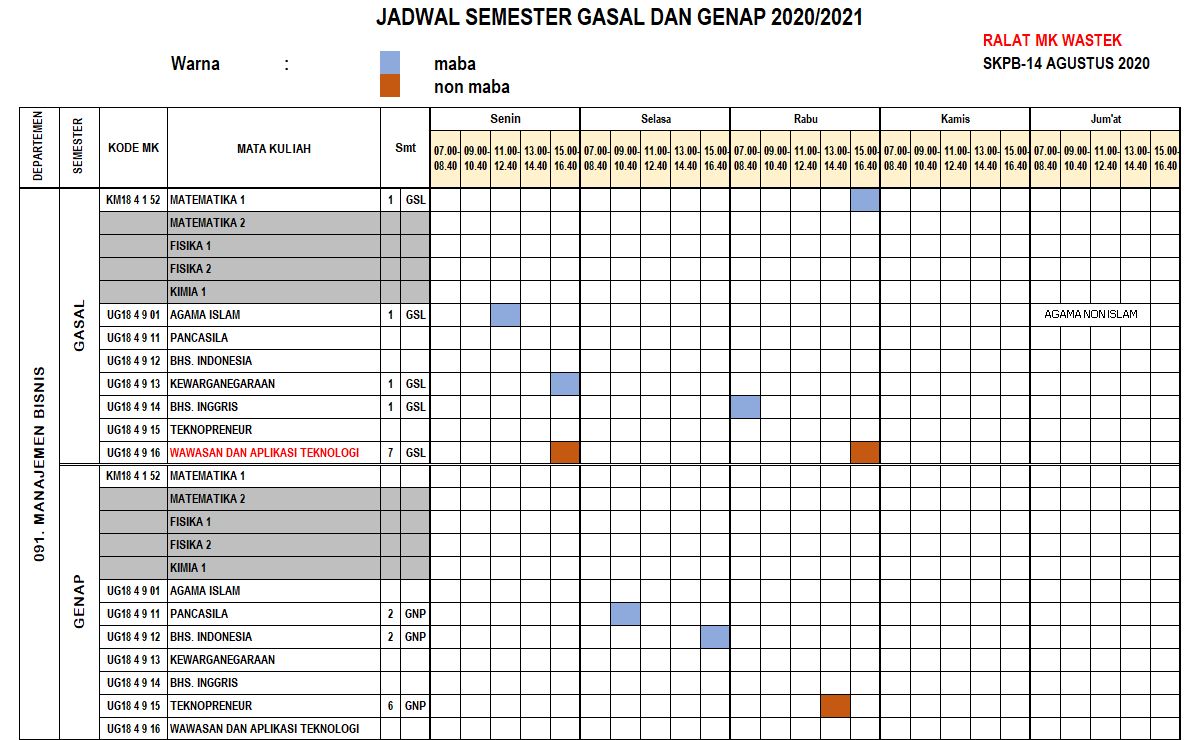 Jadwal Kuliah Semester Gasal dan Genap 2020/2021