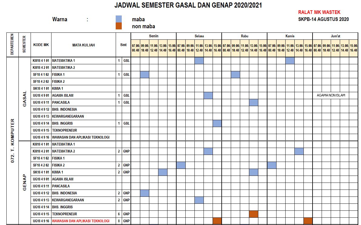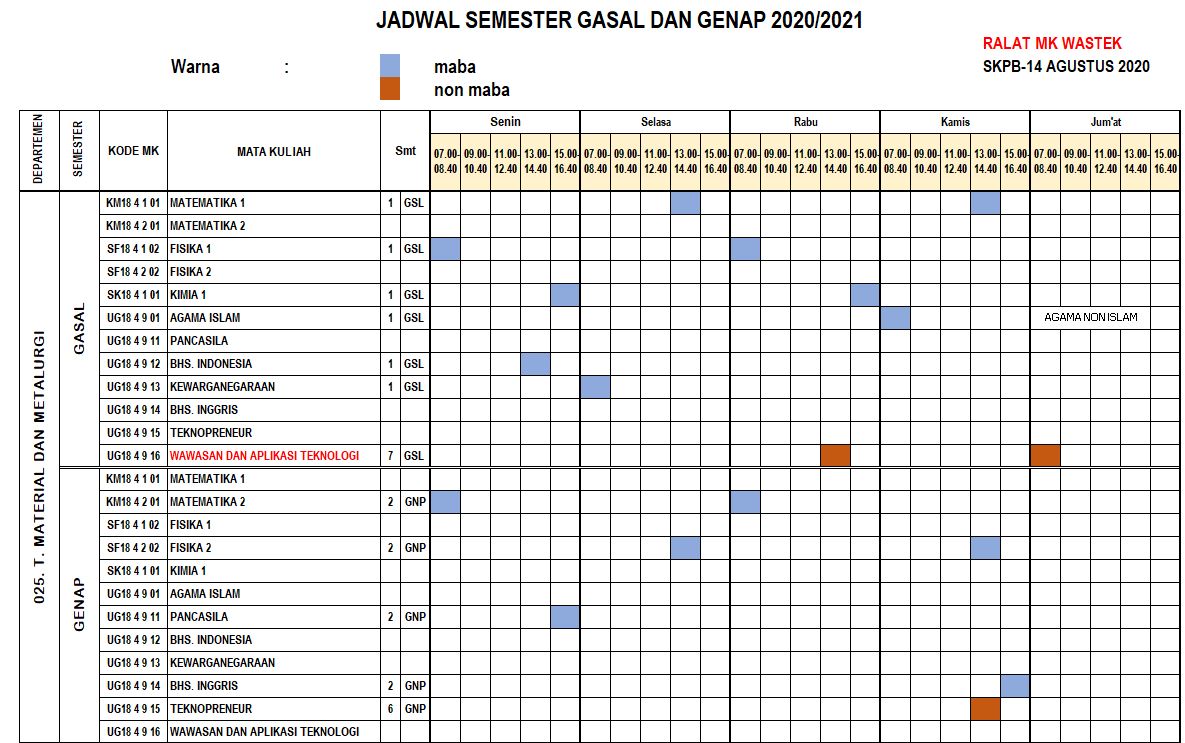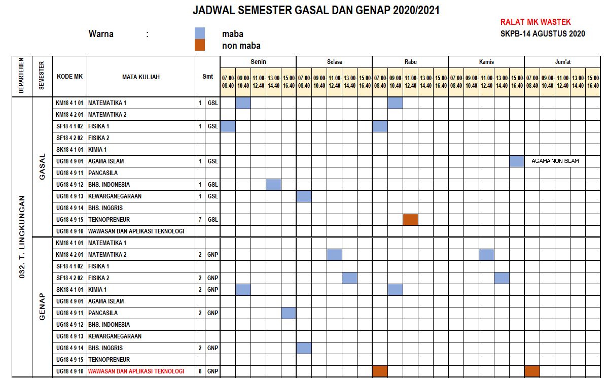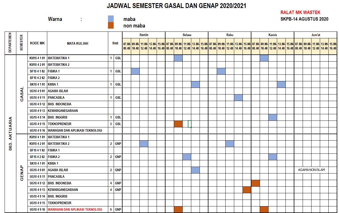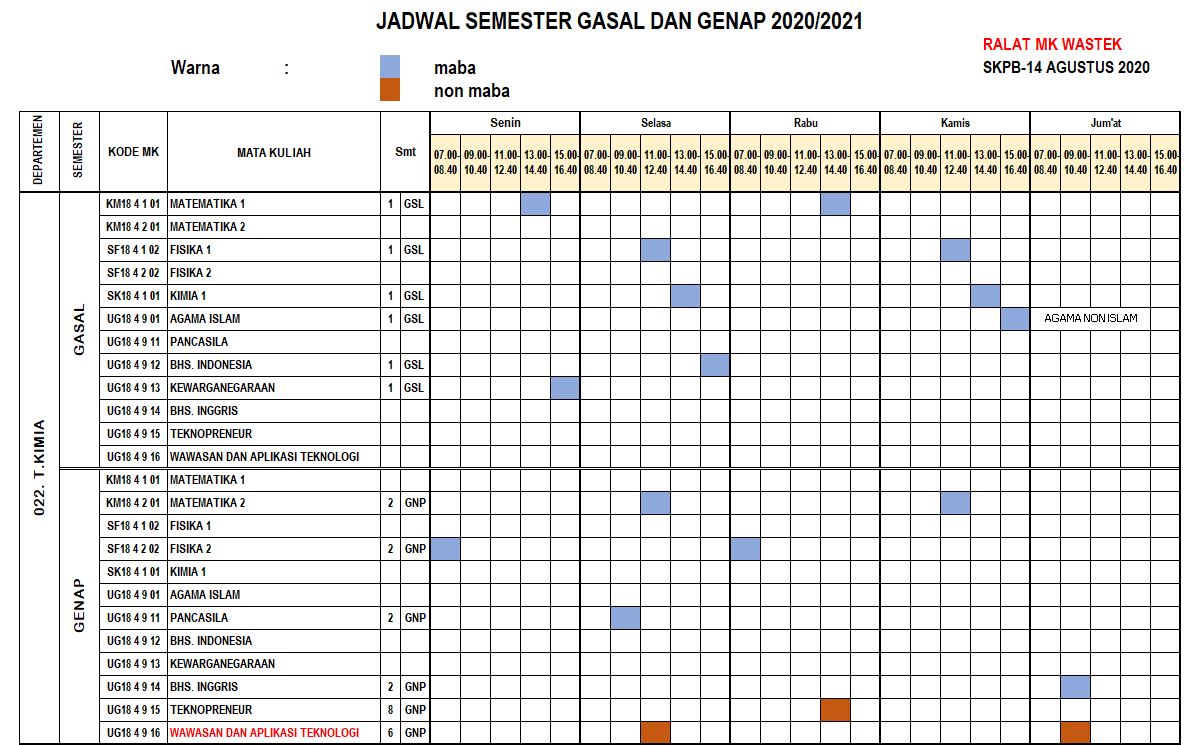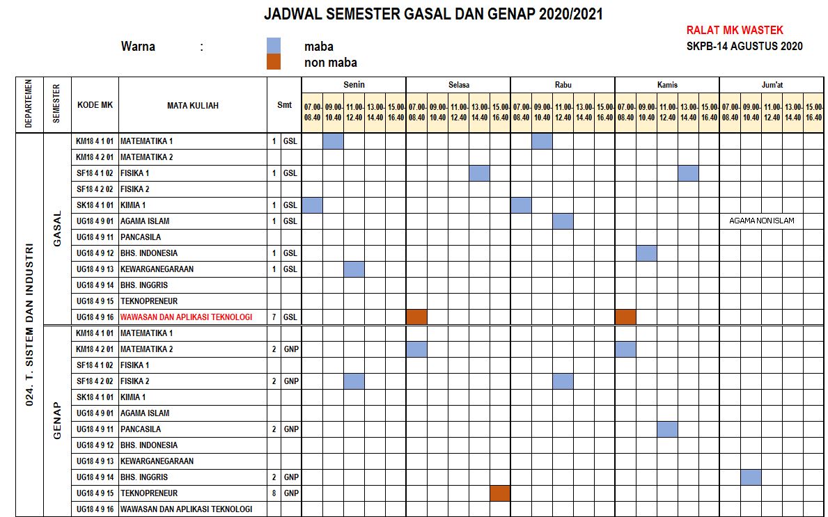 Jadwal Kuliah Semester Gasal dan Genap 2020/2021