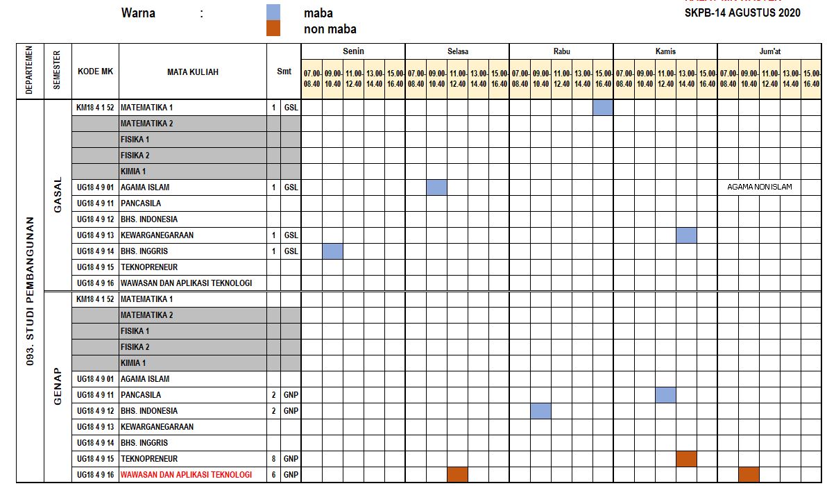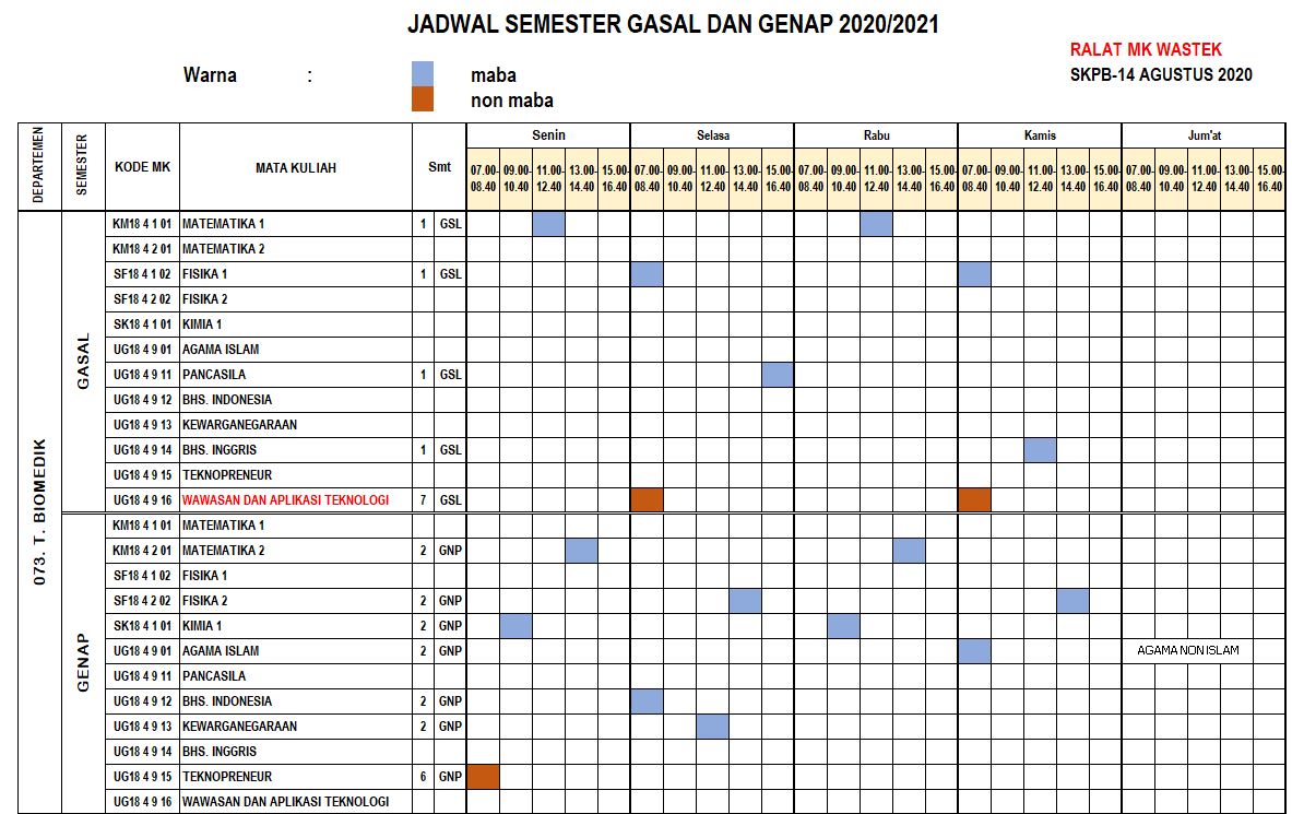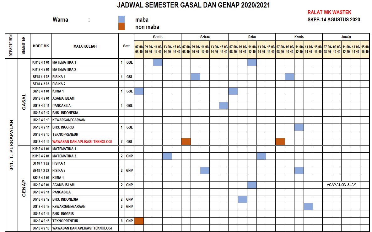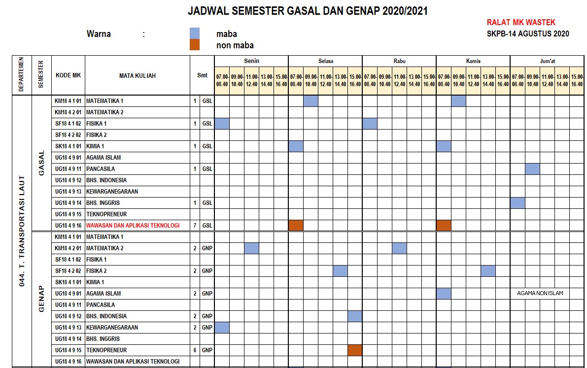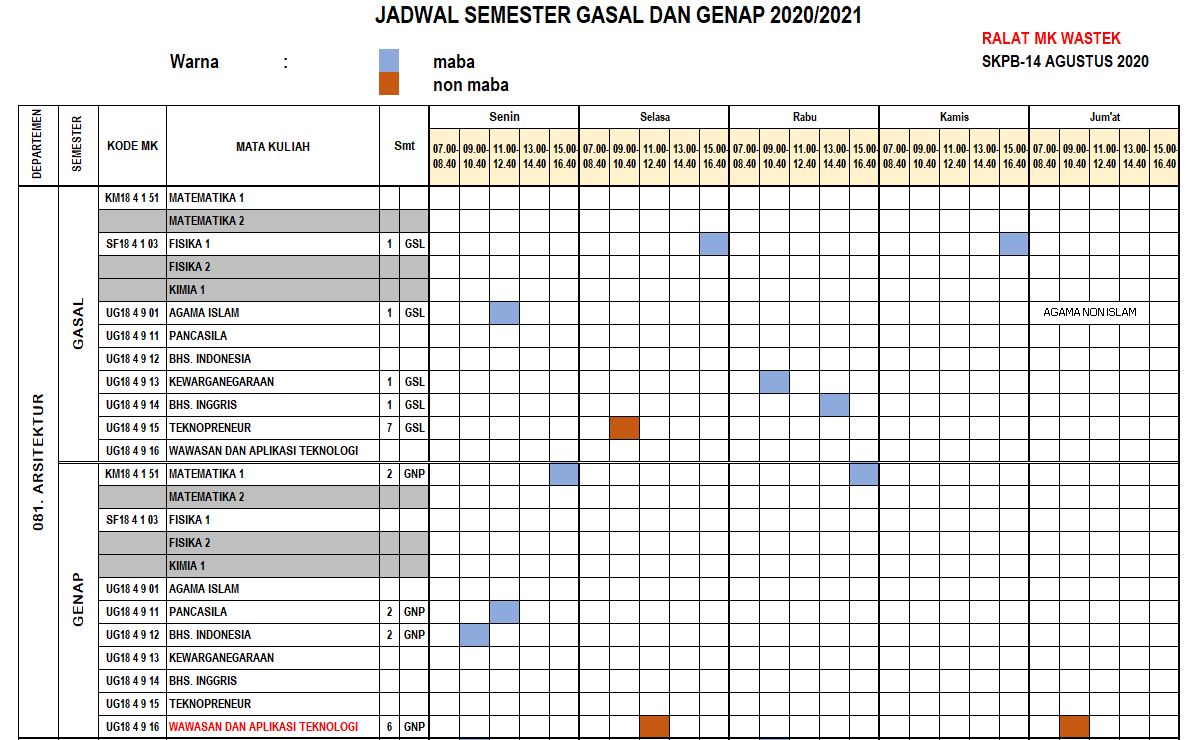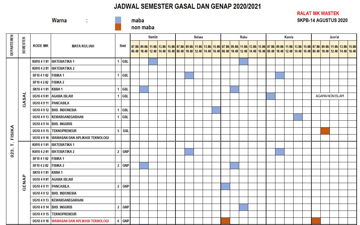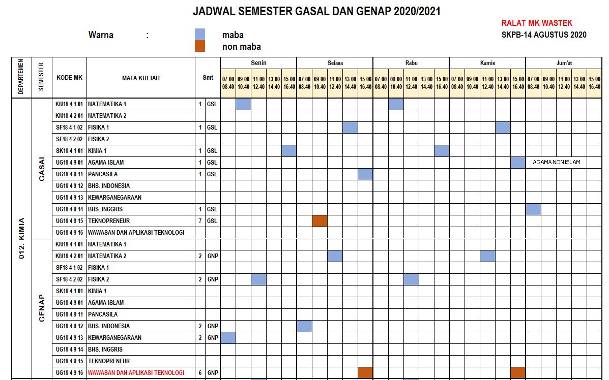 Jadwal Kuliah Semester Gasal dan Genap 2020/2021