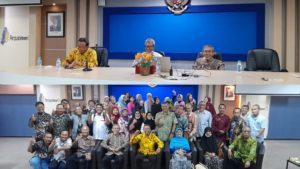 Held in the Seminar Room on the 2nd Floor of the Library Building, the event started at eight o’clock in the morning. Halal bi Halal begins with an opening by MC Marsudiyana, followed by the reading of the holy verses of the Koran by Mr. Aseri, Then a Speech from the Head of the Library, Mr. Eddy Suprayitno. Eddy said that the ties of friendship must still be nurtured with staff who have retired or have moved to other units, with the hope that friendship and brotherhood will remain beautiful between us.