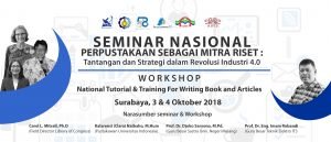 Seminar Nasional “Perpustakaan sebagai Mitra Riset: Tantangan dan Strategi dalam Revolusi Industri 4.0” dan Workshop “National Tutorial and Training: For Writing Book & Articles” pada: