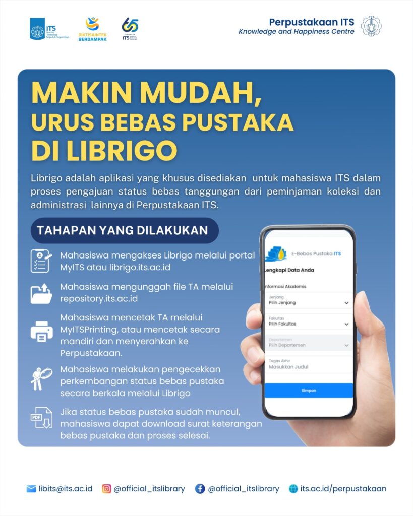 Bebas Pustaka is a letter explaining that students do not have collection loans and fines in the ITS library. Every ITS student who has completed studies is required to take care of Bebas Pustaka Perpustakaan Pusat. Bebas Pustaka Perpustakaan Pusat as a requirement for graduation and taking a diploma (not a judicial requirement).