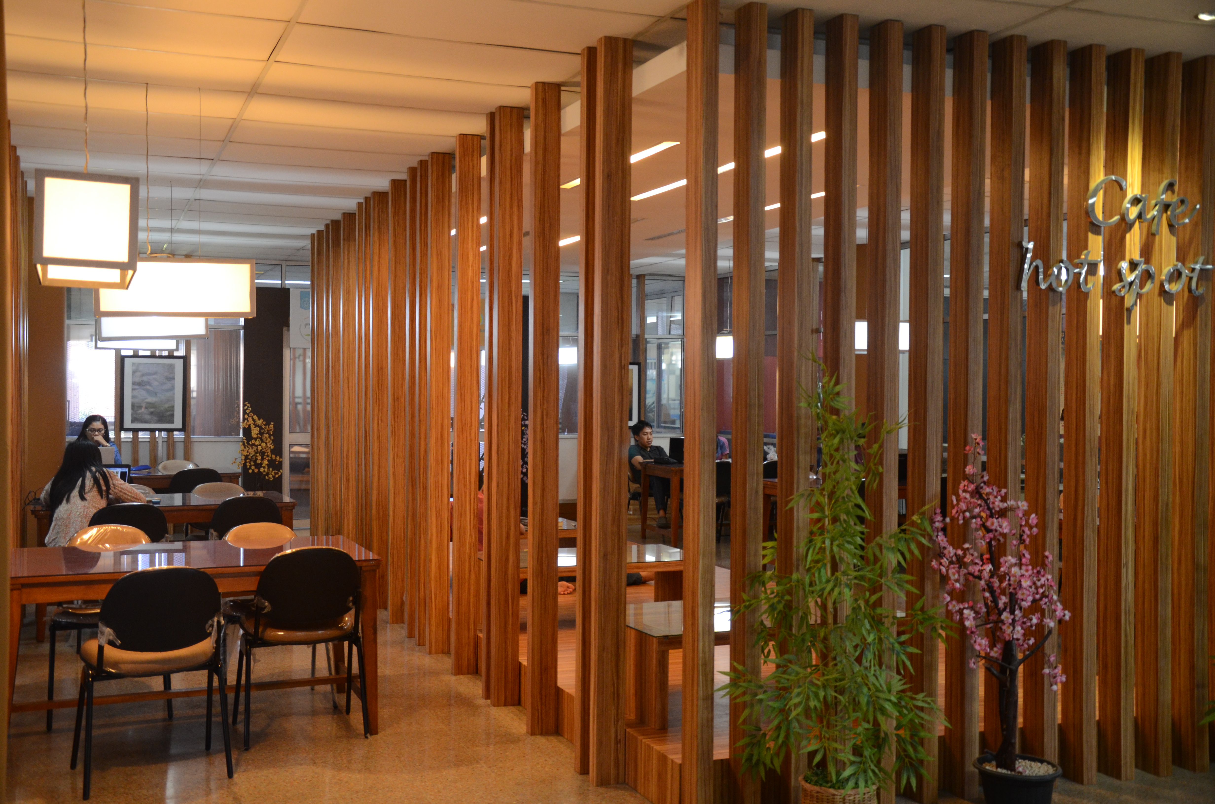 This reading place is designed to resemble the feel of a cafe. The cafe is very synonymous with a calm and relaxed atmosphere. The concept is suitable for the tastes of young people today, where they have their own satisfaction when getting a cafe-style learning place in the library. The tranquility and comfort of a learning place for visitors is an important means for them because the atmosphere will greatly influence the final results of their learning.