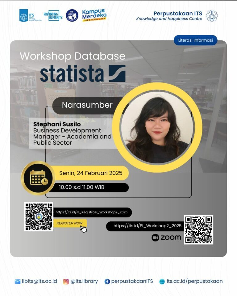 Hai CIVA ITS! Perpustakaan ITS kembali menggelar workshop bermanfaat tinggi! 📚 Workshop Database Statista
