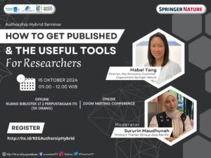 Perpustakaan ITS menyelenggarakan kegiatan Authorship Hybrid Seminar “How to Get Published & The Useful Tools For Researchers” untuk mendukung kegiatan pembelajaran dan penelitian bagi Sivitas Akademika ITS.