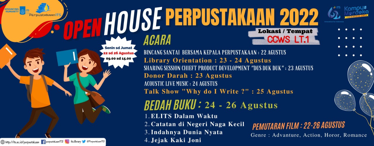 Saatnya bagi kamu semua, siapkan dirimu! ikuti seluruh rangkaian Open House Perpustakaan ITS 2022 “ITS Library : from Us to Us for All”