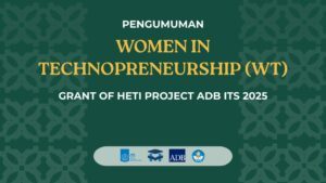 Kegiatan Grant of HETI Project ADB Loan No. 4110-INO ITS Tahun Anggaran 2025 telah membuka pendaftaran proposal pada bidang entrepreneurship dengan skema Women in Technopreneurship (WT). Pendaftaran proposal berlangsung dari tanggal 17 Februari hingga 24 Maret 2025. Tidak hanya itu, Project Implementation Unit (PIU) HETI Project ADB ITS juga telah selesai melaksanakan proses seleksi proposal.
