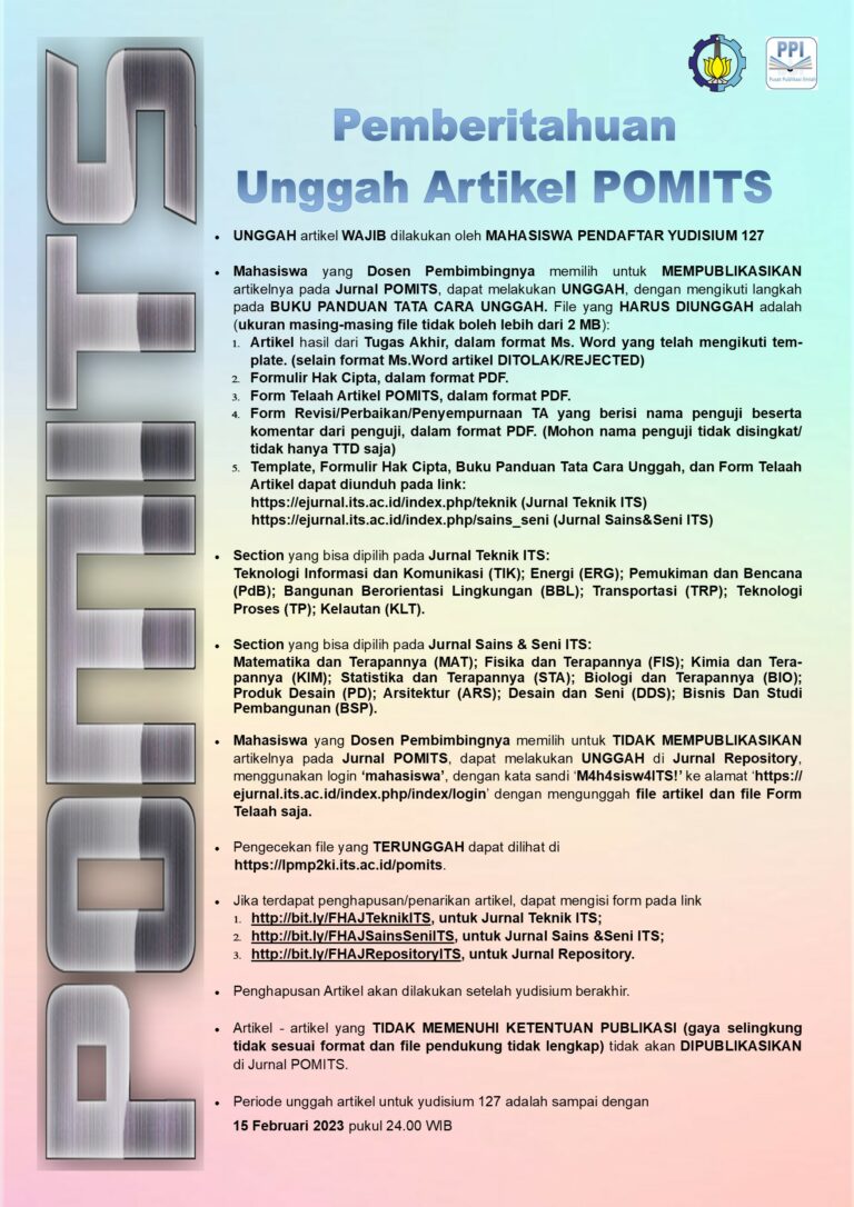 Terkait dengan semakin berkembangnya kebutuhan akan unggah artikel mahasiswa S1/D4 ke Publikasi Online ITS(POMITS)