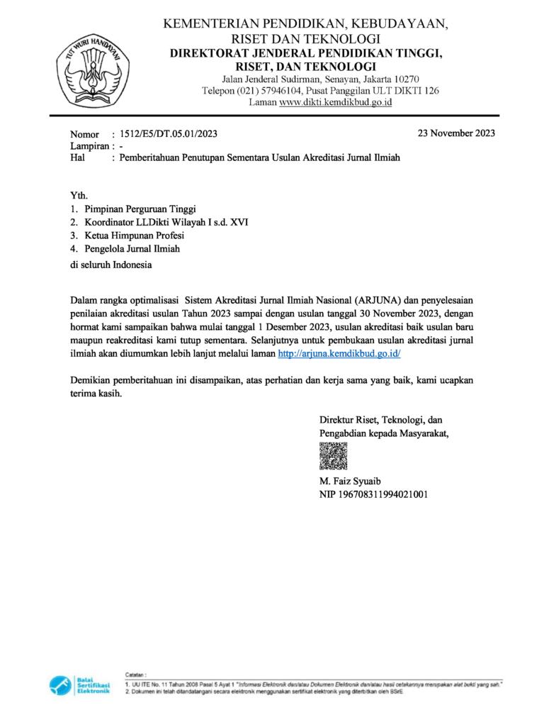 Read MoreBersama ini kami sampaikan dengan hormat, salinan surat dari Kementerian Pendidikan, Kebudayaan, Riset dan